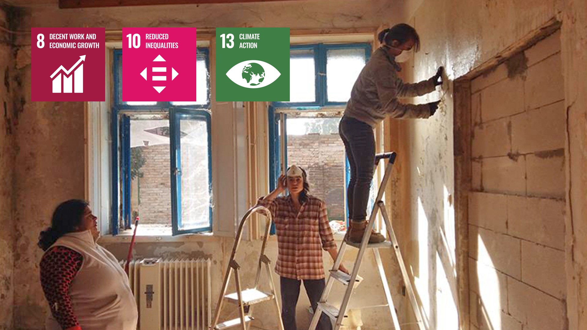 发展和运营社会住房和保障是布达佩斯一个住房翻新、就业帮扶和住房权利倡导项目,致力于为无家可归者和低收入者提供永久、租得起的房子。该项目帮助他们培养独立、稳定生活所需,并让他们更好地融入社会。该项目与政府合作伙伴、志愿者和租户一起把空置的房产和土地重新利用,作为无家可归者和低收入者的负担得起的租赁住房。它借鉴了美国首创的“住房第一”模式,将住房与对租户的社会支持结合起来,以帮助他们独立自主、自力更生。这也是一个环保项目,因为该项目将空置的建筑物重新投入使用,利用捐赠的建筑材料、二手工具和建筑设备。房子翻修工作很简单,成本低廉。