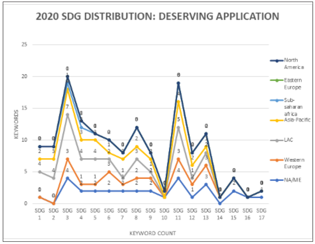 2020 SDG Distribution for 45 Deserving Submissions of the Guangzhou Award