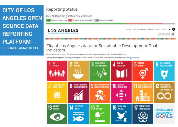 Seeking to improve the lives of L.A. residents via the Sustainable Development Goals (SDGs), and in order to develop and share SDG tools in a transparent way, Los Angeles is pioneering two open-source mechanisms for SDG action at the sub-national level: the SDG Data Reporting Platform (Open SDG) and the SDG Activities Index. While Open SDG was developed for national statistics, L.A. is the first city to adapt it for sub-national reporting. The SDG Activities Index is a living, crowd-sourced encyclopaedia of organizations advancing the SDGs in L.A. It is searchable, exportable, and allows residents to build shared capacity and learn about the SDGs. Both of these tools have wikis, and their code can be reused by other cities and organizations. The platform was chosen and implemented by the City of L.A.’s Information Technology Agency (ITA) in partnership with the Mayor’s Office of International Affairs (MOIA) and the Mayor’s Fund for Los Angeles (MFLA).