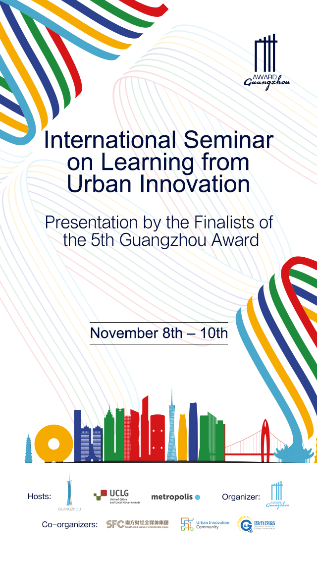 The International Seminar on Learning from Urban Innovation for the 5th Guangzhou Award will be held concurrently as a key event in the 2021 Global Mayor’s Forum. Finalists of the Guangzhou Award will present their shortlisted initiatives and answer questions from the moderators and the audience.