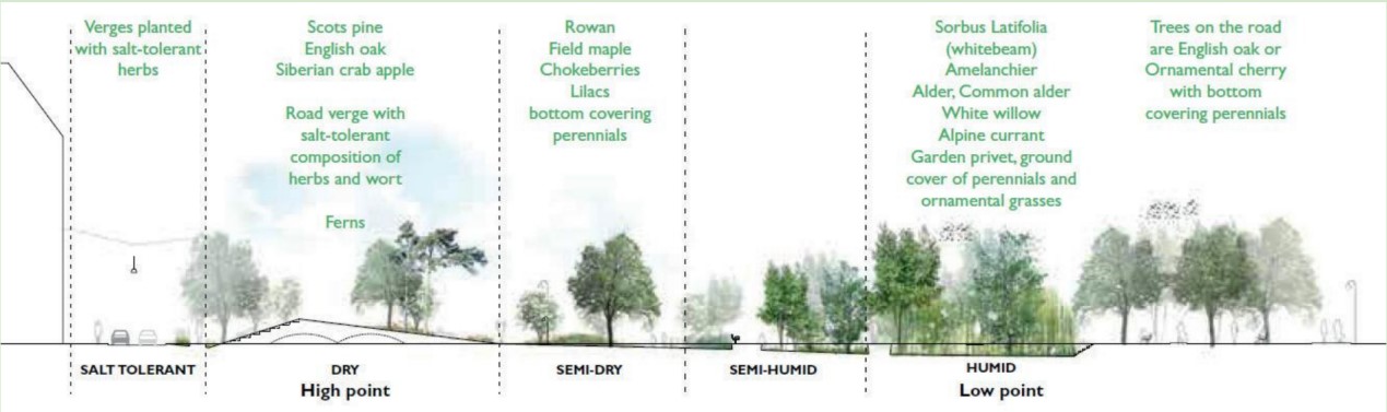 Figure: Different planting schemes for different areas, covering a wide range of local plant species