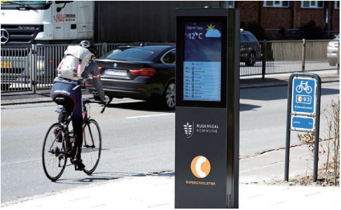 By cycle superhighways, Allersted refers to a Danish innovation in cycling infrastructure to build wide, straight, smooth cycle paths well-spaced from roadways and without at-grade crossings. Cycle superhighways cross municipal boundaries and stitch together the metropolitan region in order to facilitate long-distance cycling commutes.