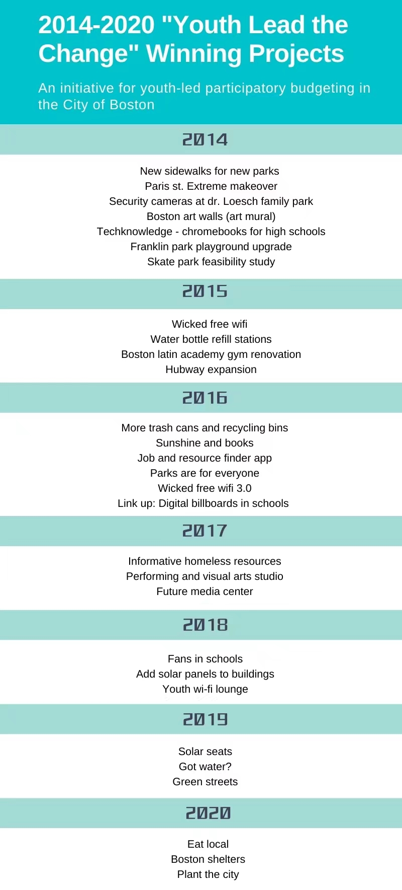 Given that young people are the future leaders of society, the then-mayor Martin Walsh has been committed to giving young people a voice and engaging them in the workings of government. Based on this background, 2014 witnessed the creation of the initiative “Youth Lead the Change: Youth Participatory Budgeting”, which has been designed to empower young people between the ages of 12 and 25 to decide how to spend $1 million of the city budget each year. The project has not only encouraged young people to participate in policy dialogue and city affairs but more importantly, fostered a lifelong commitment to local public engagement.