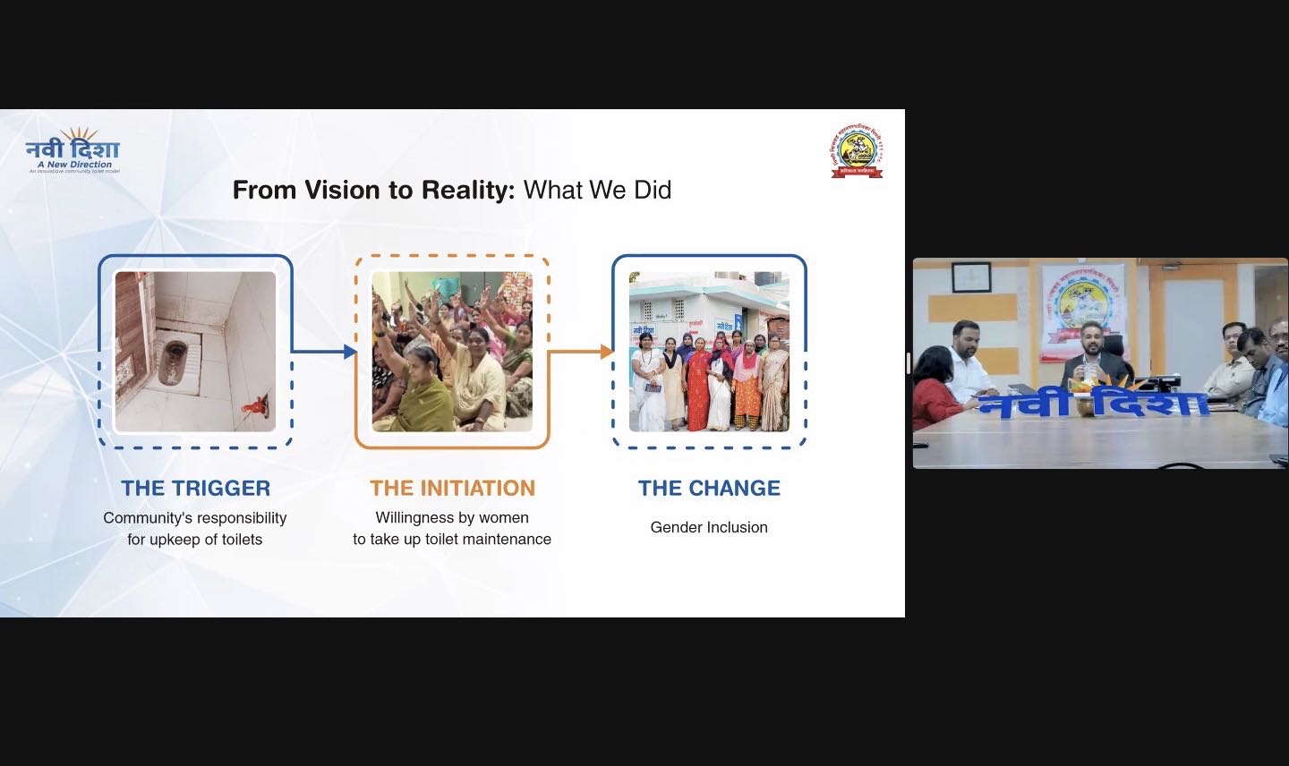 “所有的这些社区厕所都是跟我们城市的排污系统连接在一起的,厕所的排污通过城市排污系统来完成。”宾布里金杰沃德市的代表舍喀尔·辛答道。“我们认为在社区当中有多个群体都积极参与了这一项目,这些群体可以在参与过程中互相赋能,互相帮助,互相学习。在整个社区当中,男女比例大概是1:1,我们会优先动员社区中的女性,之后也会发动男性成员积极参与。项目积极纳入不同身份的人,让他们一起为社区的公共卫生做出贡献,发出声音。”