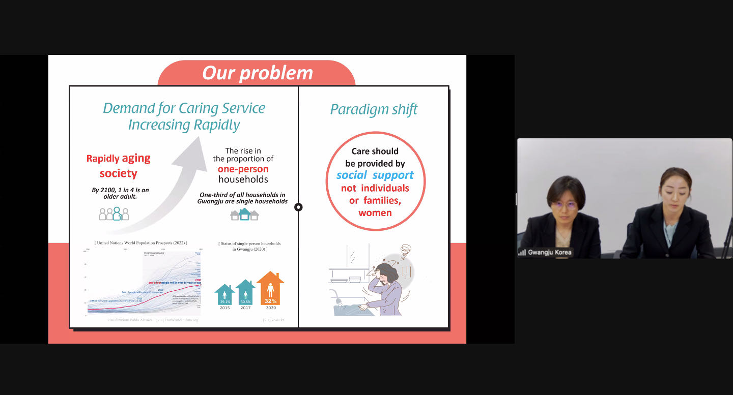 “政府如何选择民营的护理服务公司?”“项目如何获得资金支持?”“长期来讲,资金的来源怎么保证?”“如何治理这个项目?是由市政府负责还是通过多方合作?”对于现场观众的连番提问,光州市关爱政策行动干事金京明、大韩民国光州市国际中心翻译李友敏一一回应。
