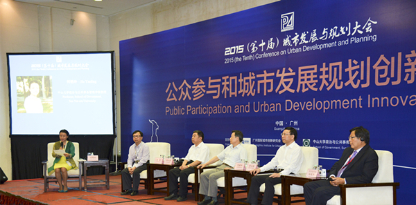The Public Participation and Urban Development Innovation Forum, a sub-event of 2015 (the tenth) Conference on Urban Development and Planning, was held successfully in Baiyun International Convention Center on July 23. It is the first joint-activity organized by Guangzhou Institute for Urban Innovation (GIUI) and School of Government, Sun Yat-sen University.