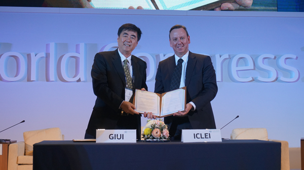 During the Congress, the delegation met with ICLEI Secretary General Mr. Gino Van Begin. Van Begin expressed his appreciation towards the delegation on taking an active part in the Congress and making contributions. Both parties exchanged views on means of expanding global networks and playing active roles in international affairs for both city authorities and non-governmental organizations. Also held during the congress was a formal ceremony to facilitate the signing and exchanging of the Memorandum of Understanding between ICLEI and Guangzhou Institute for Urban Innovation (GIUI), marking the beginning of a promising collaborative relationships between ICLEI, the world’s leading network of over 1,000 cities, towns and metropolises, and GIUI, a Guangzhou-based heavy-weight research body that aims at furthering the concepts, tools and methodologies of urban innovation.