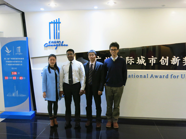 Chairman Toshan Nimalasiri of Galewela local government of the Democratic Socialist Republic of Sri Lanka was on a business trip in Guangzhou on March 12, during which he paid a courtesy call to the secretariat of Guangzhou International Award for Urban Innovation.