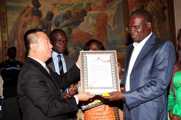 On Dec 18, a grand ceremony was held at Dakar City Hall to celebrate for being the laureate of the 2nd Guangzhou Award. Mayor Khalifa Ababacar Sall and the Chinese ambassador Mr. Xia Huang attended the ceremony.