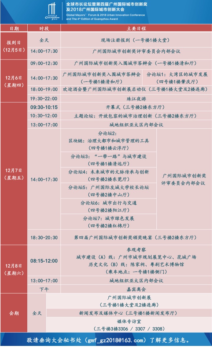 全球市长论坛暨第四届广州国际城市创新奖及2018广州国际城市创新大会会议日程(更新:2018年11月29日)