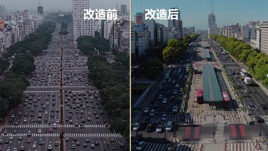 布宜诺斯艾利斯是阿根廷首都和最大的城市,七月九日大道也是今天世界上最宽阔的城市街道,只要穿越这条大街一次,就会对它的宽广和车流留下难以磨灭的印象。为了缓解城市日益严重的交通拥堵,布宜诺斯艾利斯通过一系列努力对其进行了改造,比如通过设置双向四车道的BRT系统、取消道路两边的公交车道、整合内街交通等方式,大大改善了七月九日大道的整体运行环境。