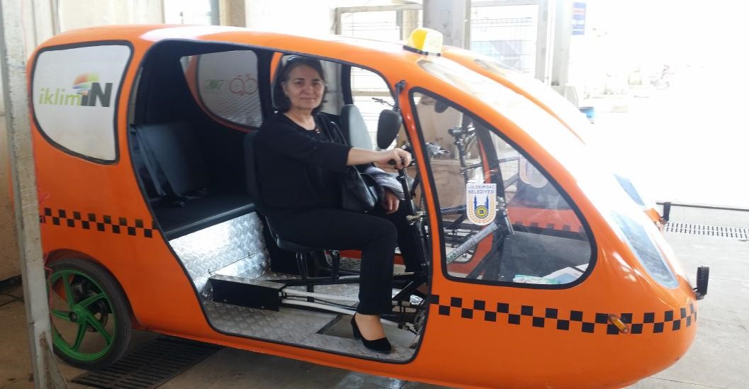 副市长欧兹坎(Kevser Ozkan)驾驶便民电动车,便民电动车分布在全市,为有需要的人提供服务