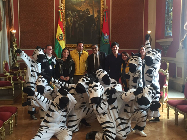 Guangzhou award research group dress as zebras in La Paz