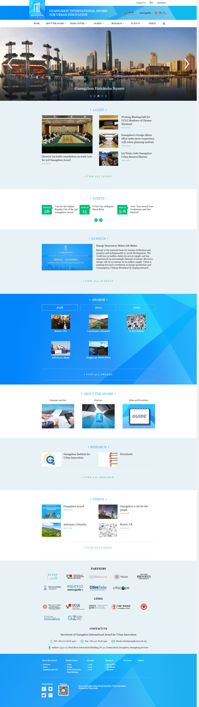 The Organizing Committee of Guangzhou International Award for Urban Innovation (Guangzhou Award) launched its official Chinese and English bilingual websites in February, in cooperation with leading media outlet China Daily.By bringing together news, case