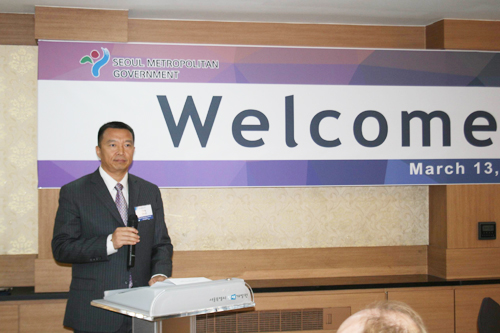 On behalf of Chen Jianhua, mayor of Guangzhou, Zhao Fang, deputy secretary-general of Guangzhou government delivered an important speech at the open forum of Metropolis International Training Institute in Seoul, South Korea on March 13th, 2014.