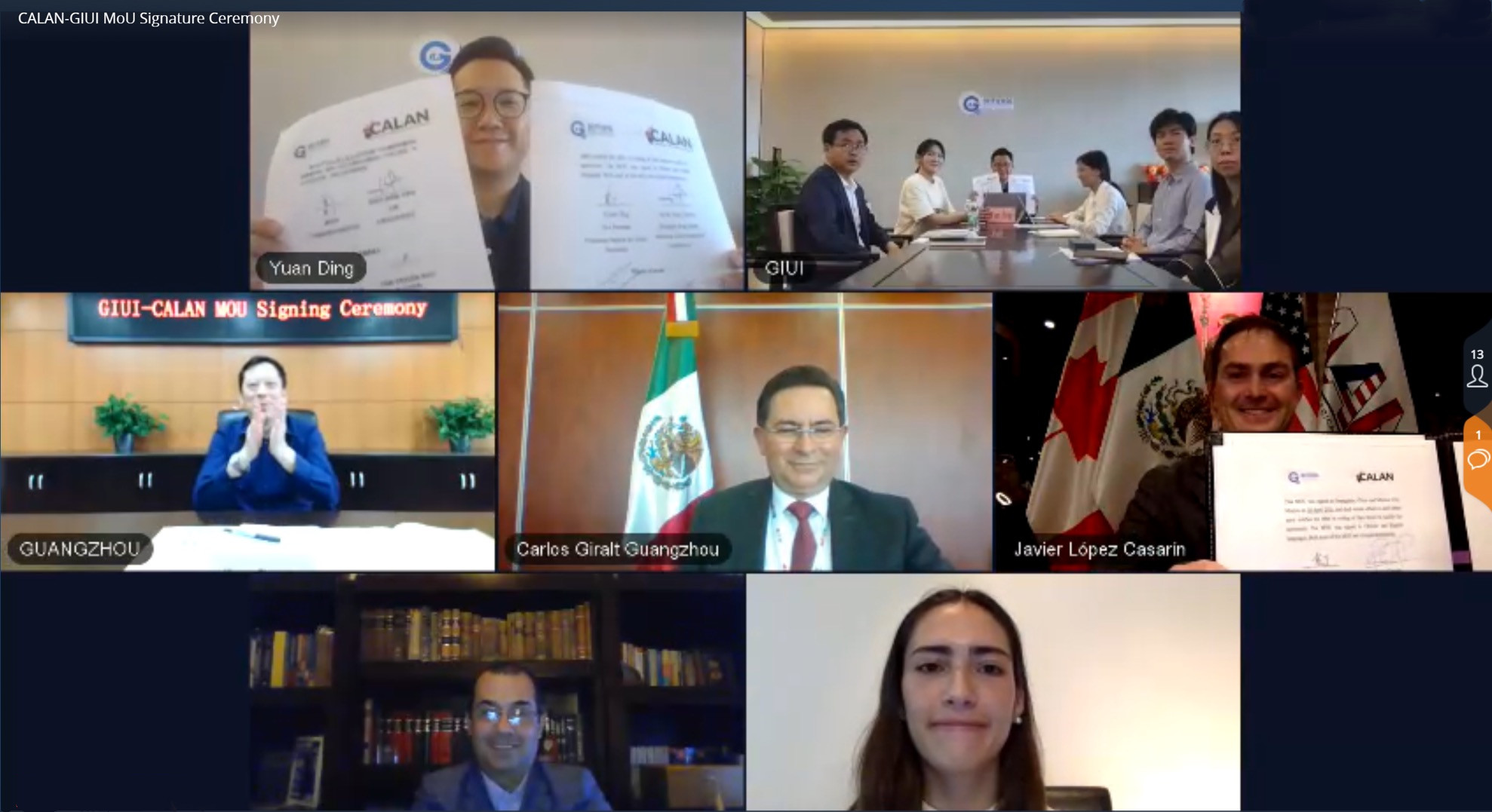 On April 22nd, Guangzhou Institute for Urban Innovation (GIUI) and North American Local Authorities Conference (CALAN) held a virtual signing ceremony to set up a strategic partnership.